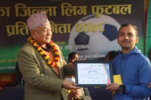 जिल्ला फुटबल संघ इलामले जिल्लाका तीन पत्रकारलाई शुक्रबार सम्मानसहित पुरस्कृत गरेको छ । पत्रकारीताको माध्यमबाट इलामको खेलकुद क्षेत्रमा कलम चलाउने तीन पत्रकार सम्मान सहित पुरस्कृत बनेका हुन् । संघले पत्रकारहरु गणेश घिमिरे, नमिन ढकाल र विनय तिम्सिनालाई सम्मान सहित जनही २१ सय रुपैंयाँका दरले पुरस्कृत गरेको हो । पुरस्कृत तीनै जनालाई इलाम नगरपालिकाका मेयर महेश बस्नेत, अखिल नेपाल फुटबल संघ (एन्फा) का केन्द्रीय सदस्य निरोज खड्गी र जिल्ला फुटबल संघ इलामका अध्यक्ष महेश श्रेष्ठले नगद पुरस्कार र सम्मान पत्र प्रदान गरे ।
