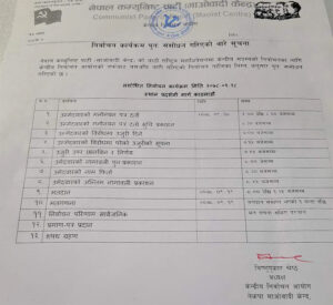यसअघि दिउँसो २ बजेदेखि उम्मेदवारी मनोनयन दर्ता र साँझ साढे ६ बजेदेखि मतदान गर्ने कार्यक्रम रहेको थियो । तर माओवादीको केन्द्रीय निर्वाचन आयोगका संयोजक विष्णुपुकार श्रेष्ठले संशोधित कार्यतालिका सार्वजनिक गर्दै आइतबार अपरान्ह ४ देखि ६ बजेसम्म उम्मेदवारी दर्ताको समय तोकेका छन् ।